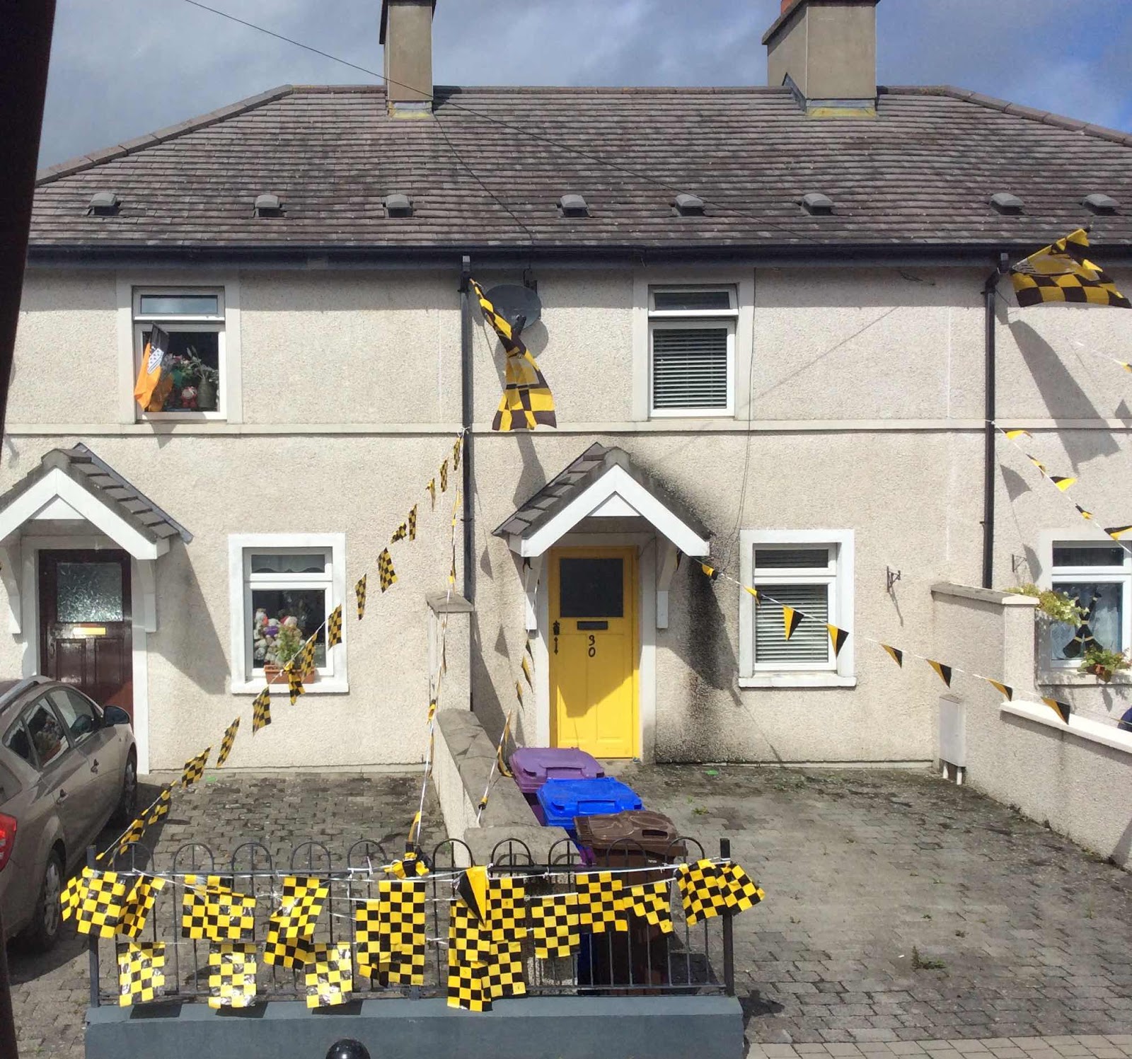 Our next stop was Kilkenny. They are in the midst of their “hurling” championship! Our guide likened it to the Stanley cup or Super Bowl championship. Since the county Kilkenny had made it to the finals (this Sunday ), the place was decked out in the team colours, black and amber. The game is similar to field hockey and lacrosse.